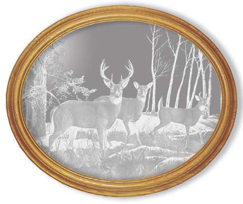 Our "Oak Ridge Deer" Oval Etched Mirror by Donald Blakney is hand-selected for luster, framed in hand-rubbed hardwood, and is ready to hang. Reflect personality and image, while soothing the psyche with this functional artwork.