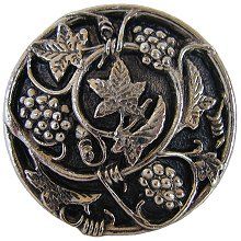 Our Grapevines Cabinet Knob In Brite Nickel will excite your senses and instill the atmosphere of an fragrant vinyard within your kitchen, bath, or den. Strong thread inserts are cast within these gorgeous Solid Pewter knobs for strength and durability. Beautiful Brite Nickel Finish. Measures: 1-5/16" Diameter. Order Your Grapevines Cabinet knobs/Drawer Pulls Today! Sorry, this finish has been discontinued by the manufacturer. Thanks!