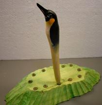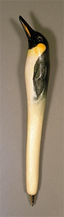 Our Penguin Handcarved Wood Pen is painstakenly handcarved, and painted by hand. Beautiful detailing enhances this unique arctic theme pen. A satin clear coat finish has been applied to protect the detailing. Measures: 6-1/2" L Order Your Penguin Handcarved Wood Pen Today!