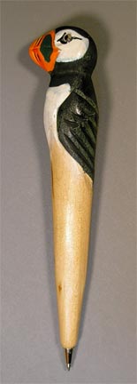 Our Puffin Handcarved Wood Pen is painstakenly handcarved, and painted by hand. Beautiful detailing enhances this unique seabird theme pen. A satin clear coat finish has been applied to protect the detailing. Measures: 6" L Order Your Puffin Handcarved Wood Pen Today!