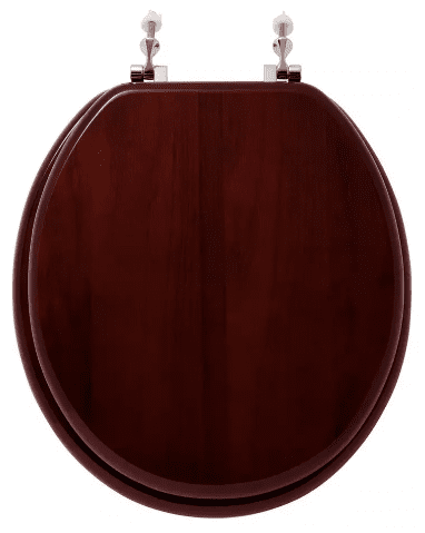 Our Solid Oak Round Burgundy Finish Toilet Seat will make an elegant choice for that special bathroom. Select your choice of hinge. Measures 14-3/8" wide x 16-5/8" from the hinge mount center to the front edge. Features standard 5-1/2" center hinge mounting. Four protective bumpers are on the seat, and two are under the lid. Order Your Solid Oak Round Toilet Seat Today!