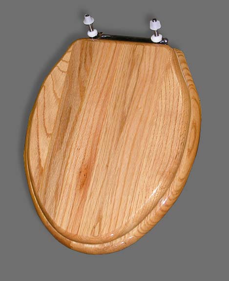 Our Elongated Hardwood Toilet Seat In Golden Oak Piano Gloss Finish is crafted from specially selected oak hardwood. The exclusive durable finish prevents cracking and warping. Chrome hinge is 5-1/2" CTC. Solid Hardwood Seat Measures: 14-5/8" W x 18-3/4" L. Seat Thickness Measures: 3/4". Overall Height: (including lid & bumpers) 2-3/4" NOTE: The manufacturer has replaced the bar style hinge with single post hinges. The have a similar look, but the center bar is missing. Order Your Light Golden Oak Elongated Finished Hardwood Toilet Seat Today!