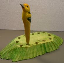 Our Yellow Bird Handcarved Wood Pen is painstakenly handcarved, and painted by hand. Beautiful detailing enhances this unique bird replica pen. A satin clear coat finish has been applied to protect the detailing. Measures: 5" L Order Your Yellow Bird Handcarved Wood Pen Today!